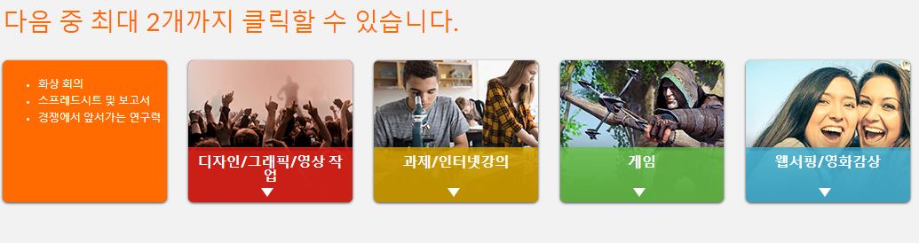 위에서 용도로 검색을 선택하면 그래픽용, 인터넷강의용, 게임용, 웹서핑용 등으로 분류된 바로 가기 메뉴가 나타나고 이제 어느 것이든 클릭만 하면 곧바로 알맞은 제품을 찾아 볼 수 있습니다.