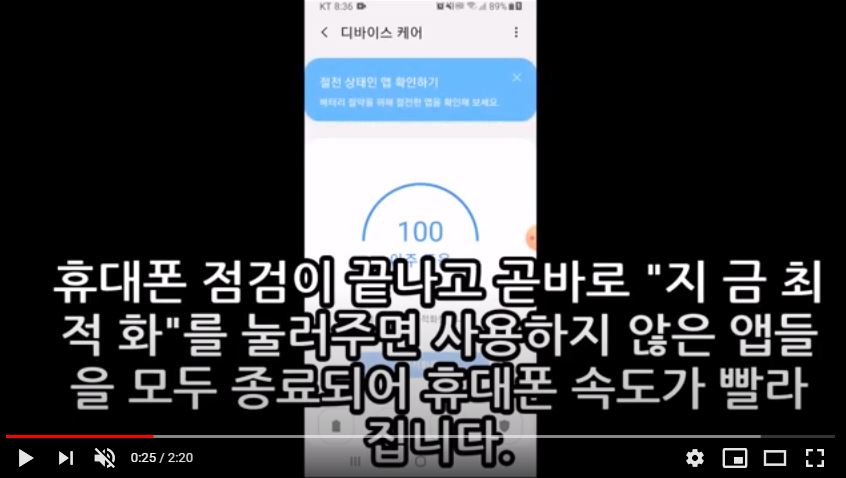 휴대폰 속도 빠르게, 오류 앱 재 실행, 배터리 관리