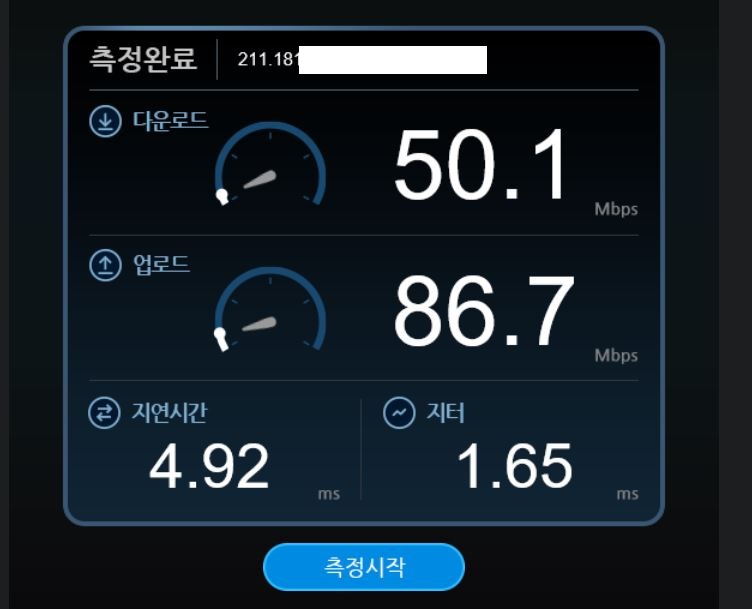 공용와이파이를 연결했는데 인터넷 속도를 측정하니 꽤나 괜찮게 나옵니다.