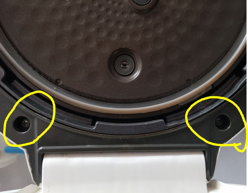 뚜껑 힌지 근방에 있는 나사들도 풀어 줍니다. 이 제품은 나사가 2개인데 제품에 따라서 나사가 여러 개 있거나 숨어 있을 수 있으니 잘 찾아서 전부 풀어 줍니다.