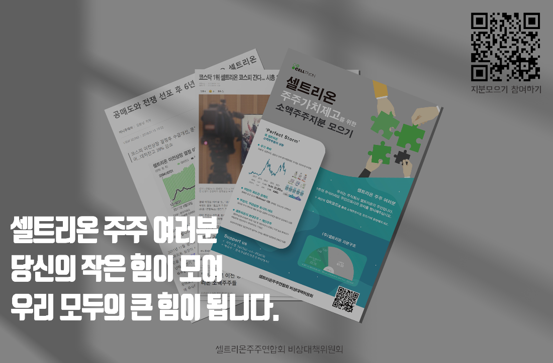 하지만, 셀트리온의 대주주인 소액주주들은 겉으로 보이는 이유보다는 주가하락의 원인은 다른 데 있다고 생각하고 있으며(셀트리온 합병 등 오너리스크), 주가가 반토막이 난 10월 초부터 비상대책위원회를 구성하고 본격적으로 지분모으기 행동에 돌입하였습니다.