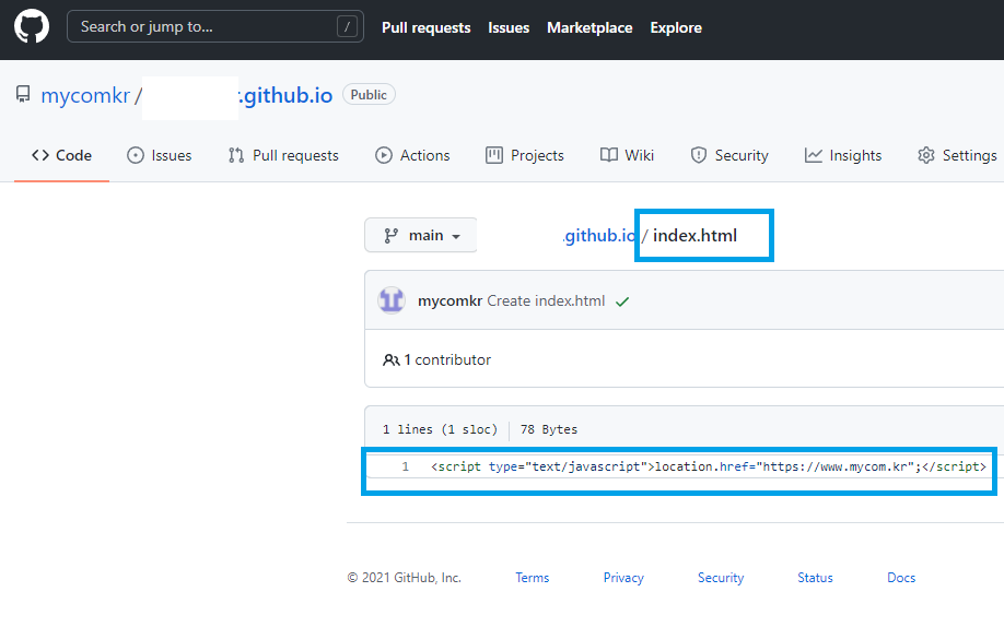 index.html 파일은 루트 도메인 접속 시 www로 시작하는 서브도메인으로 자동 이동시켜 줍니다. 제 티스토리 블로그 메인페이지로 이동합니다.