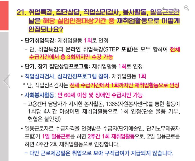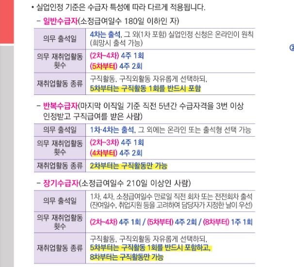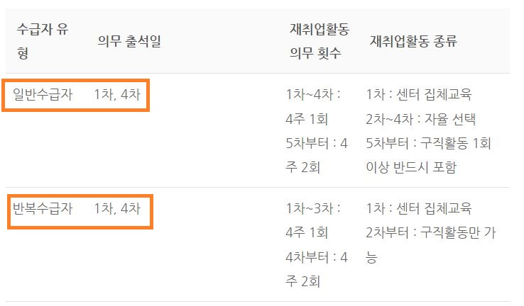 (반복수급자: 재 취업활동은 2차부터 오직 구직활동만 인정)