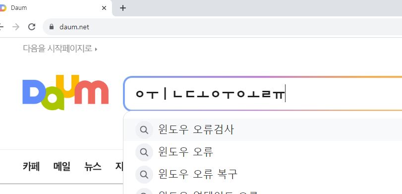 인터넷 검색창 모음 자음 분리되는 증상 간단한 해결 방법입니다.
