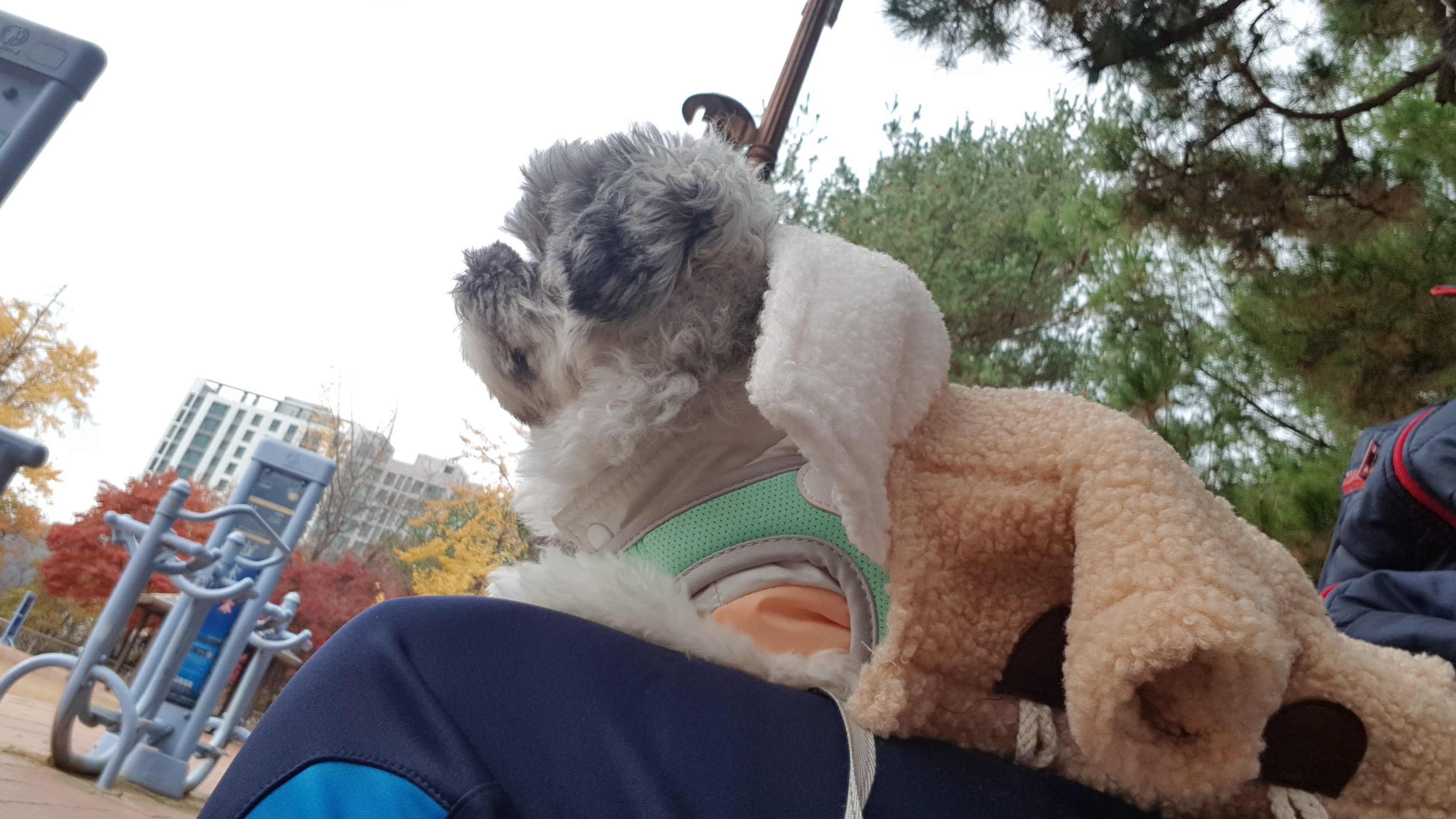 코트 딱! 걸치고 공원에서 사람 구경중입니다.