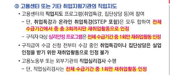 (반복수급자: 재 취업활동은 2차부터 오직 구직활동만 인정)